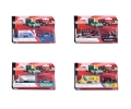 4 differenti assortimenti. Ogni veicolo è dotato di funzionamento a ruota libera e parti apribili.