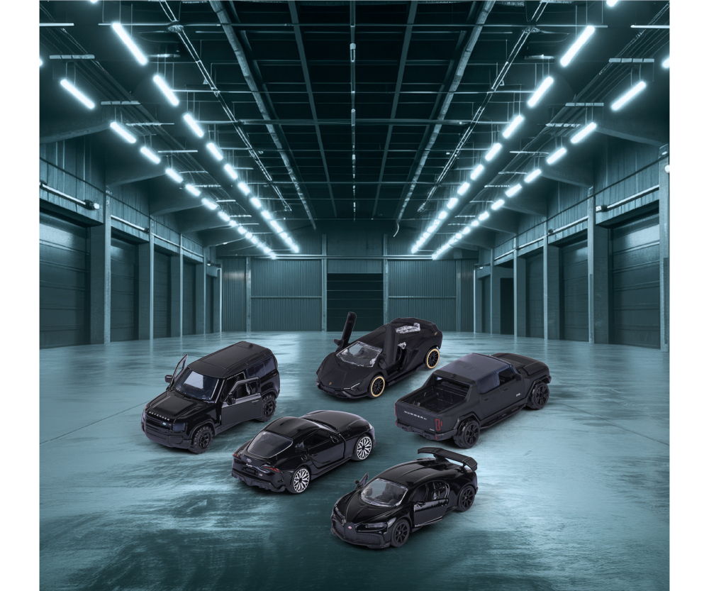 - Contiene 5 modelli esclusivi: Bugatti Chiron Pur Sport, Lamborghini Sián, Toyota GR Supra, Land Rover Defender 90, GMC Hummer EV.