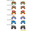 - Monster truck in metallo da 7,5 cm con design colorato e ruote oversize.