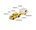 Per collezionisti accaniti: veicolo VW con licenza ufficiale e rimorchio! Queste macchinine con licenza ufficiale Majorette sono il regalo perfetto per i bambini e per gli appassionati di modellini di veicoli di tutte le età. La serie è composta da 4 modelli VW, ognuno dei quali ha un design dettagliato e rimorchio coordinato nei colori.